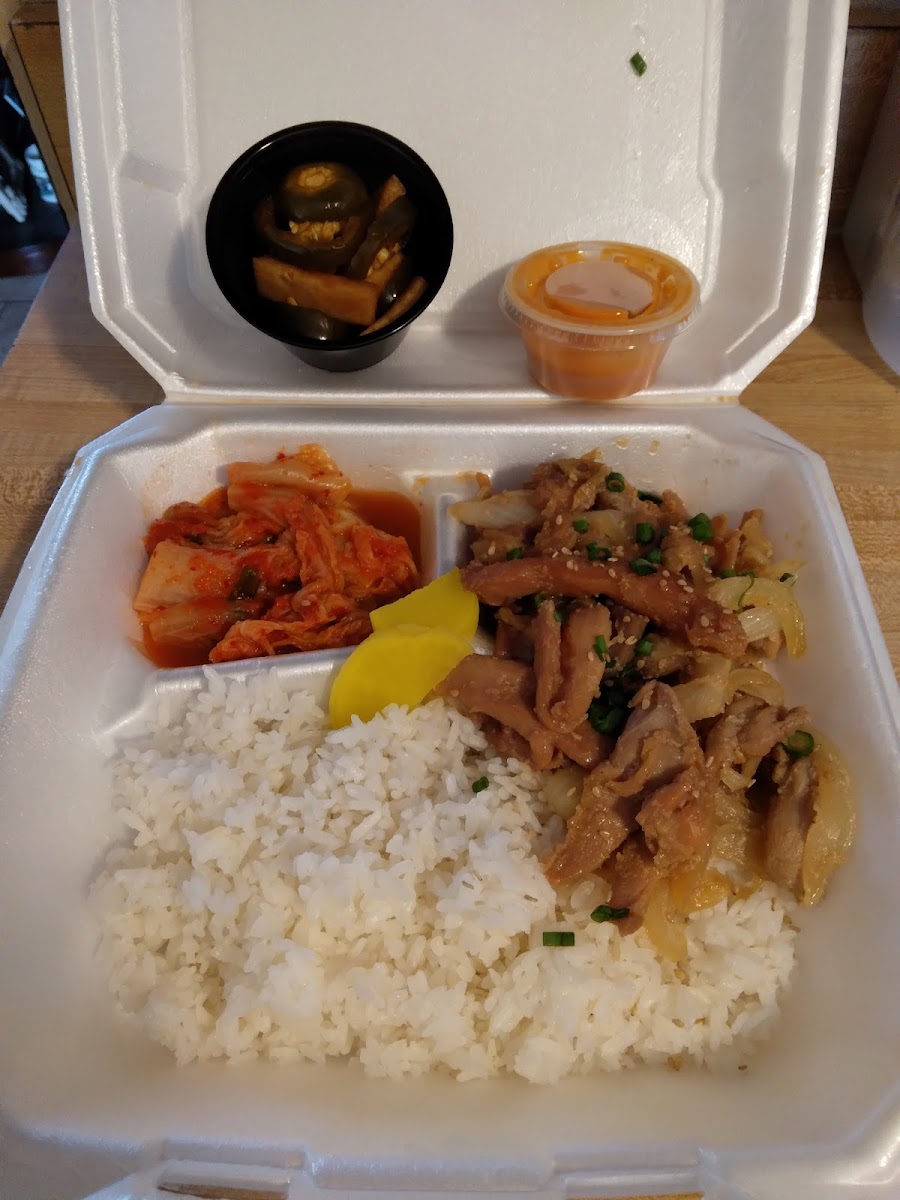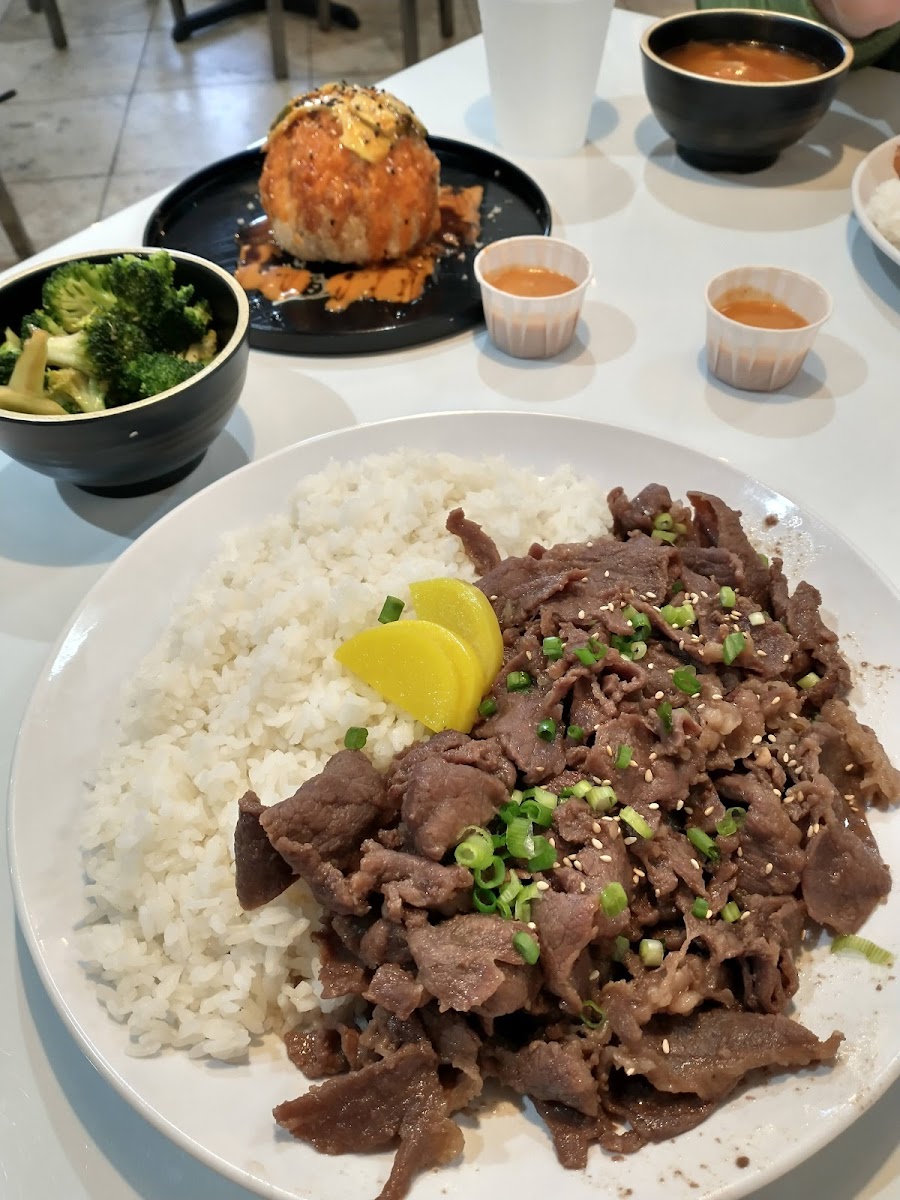 The food was amazing, and the portion sizes were great for the price! I had the lunch special and chose the chicken bulgogi, kimchi fried rice, broccoli, and the soup of the day was miso soup. The lunch special is $9.99 and the portion size is huge! I also ordered the spider roll and really liked it as well, and I'm pretty picky about my sushi. Also there are no filters on my photos, that's just how amazing the food looked (plus the lighting in there was great). *Edit: I came back and tried more sushi rolls and attached more pictures! One is a snow ball with spicy crab and the other is the surf and turf with beef bulgogi.