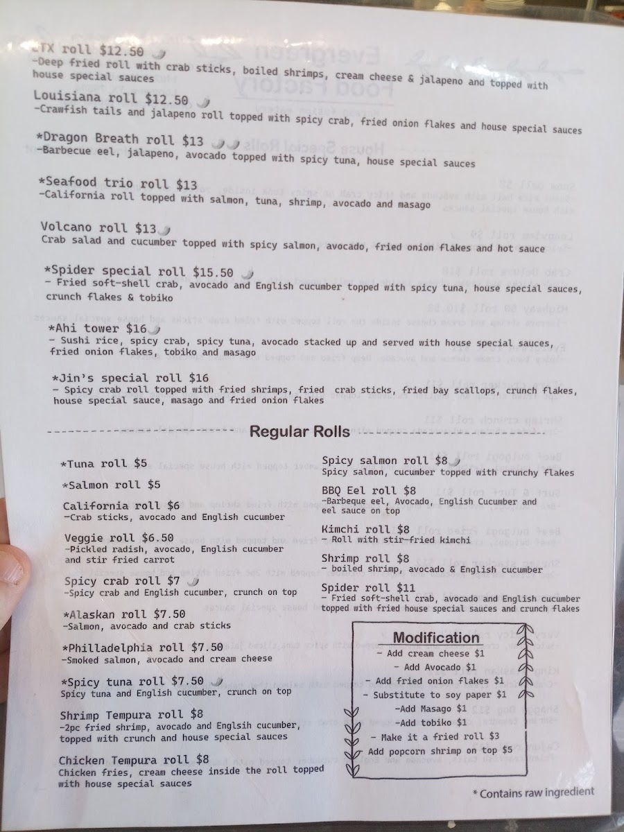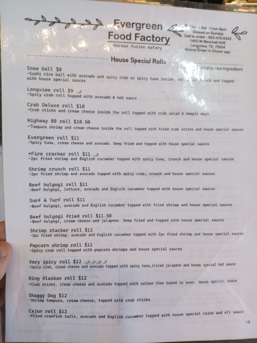 The menu features an array of sauces that complement the fried selections, such as Rice Crispy Chicken tenders or Sweet & Spicy Chicken, offering versatility whether you're dining in or ordering to go. Evergreen’s drink offerings, from sparkling water to specialty teas, round out the meal with subtle refreshment suited for the warm Texas climate.